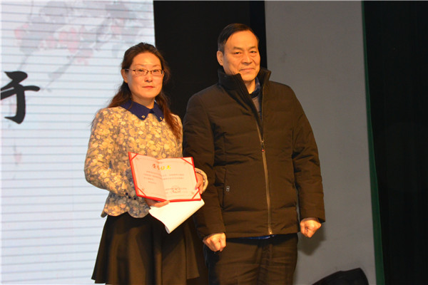公司党委书记祝永昌老师为石晓琪老师颁发了证书,樊琪副经理主持报告会。