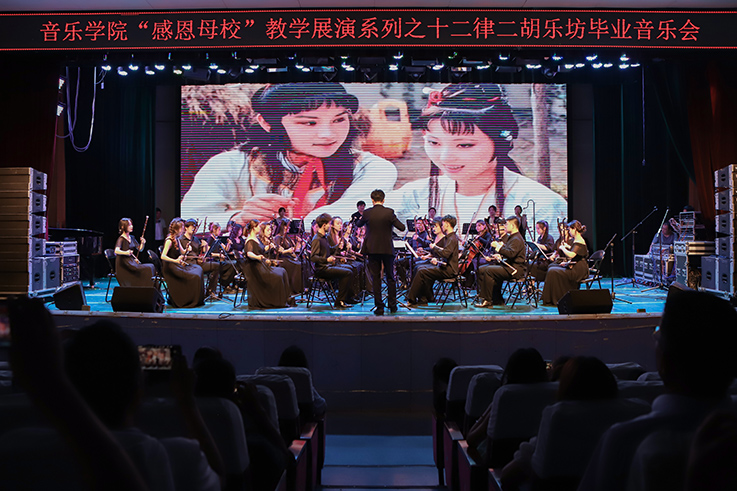 本场音乐会,以圆润柔和的二胡为主基调,与钢琴、大提琴、古筝、长笛等完美结合,既有欢快喜庆的《小花鼓》、磅礴热烈的《赛马》婉转悠扬的《彩云追月》等传统二胡作品,也有突破与创新在体现红色元素的《光明行》中,大胆地借鉴了西方音乐的创作技巧以及二胡演奏中使用小提琴的指法、弓法,既增添了民族音乐的时尚感,又讴歌了追求光明的无畏精神。
