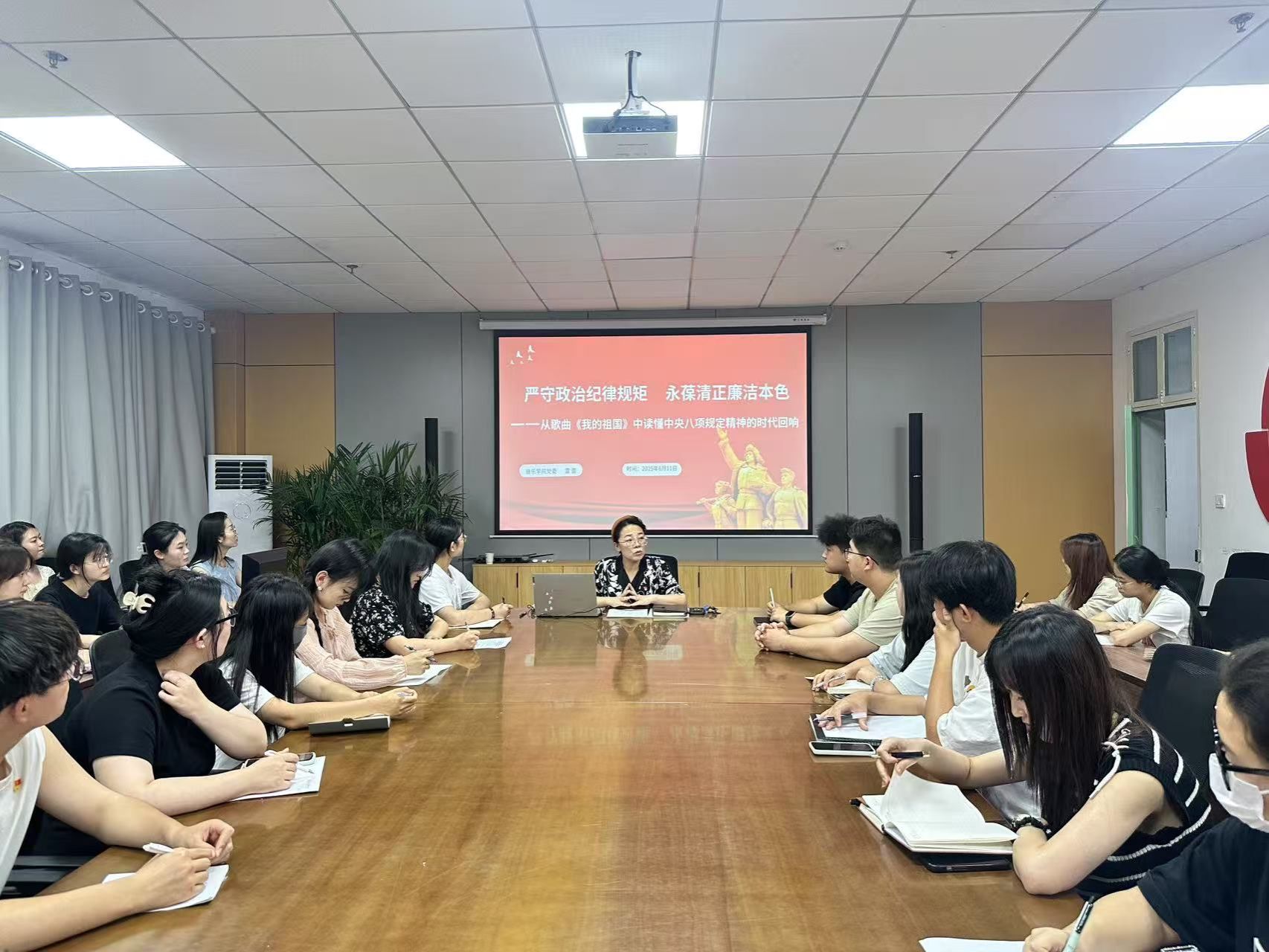 6月11日,公司党委副书记雷蕾以“严守政治纪律规矩 永葆清正廉洁本色——从歌曲《我的祖国》中读懂中央八项规定精神的时代回响”为题,为全体员工讲授专题党课。