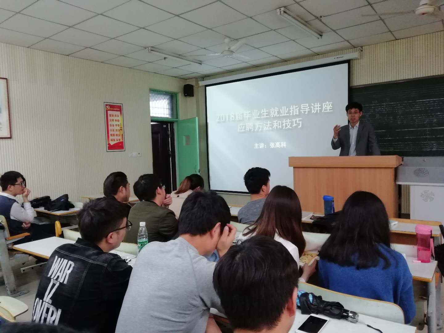 2018年5月10日,k1体育邀请就业处处长张高科、就业科科长禄研华为2018届毕业生举办了主题为“求职方法和技巧”的就业专题讲座。