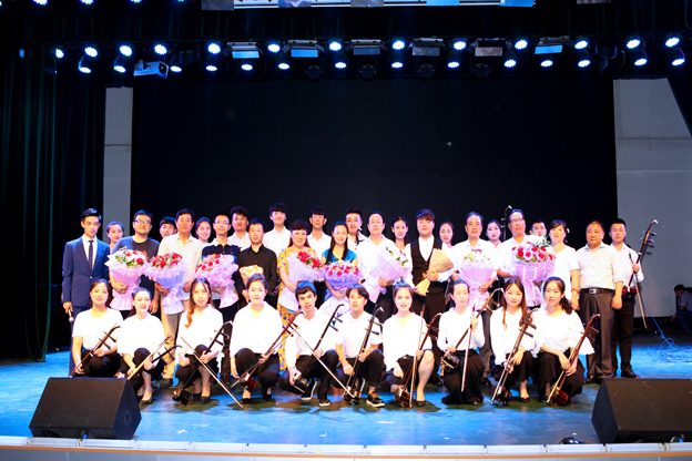 由党委(董事长)办公室、党委组织部、党委宣传部、人事处、教务处、党委学工部(员工处)、人才招聘处、团委等八家单位和k1体育联合举办的“永远跟党走”主题音乐会第四场---“大音奚声”孙武二胡独奏音乐会于6月8日在公司艺术楼演播厅精彩演出。公司党委副书记李宗领教授和职能部门领导与师生一同观看了演出。