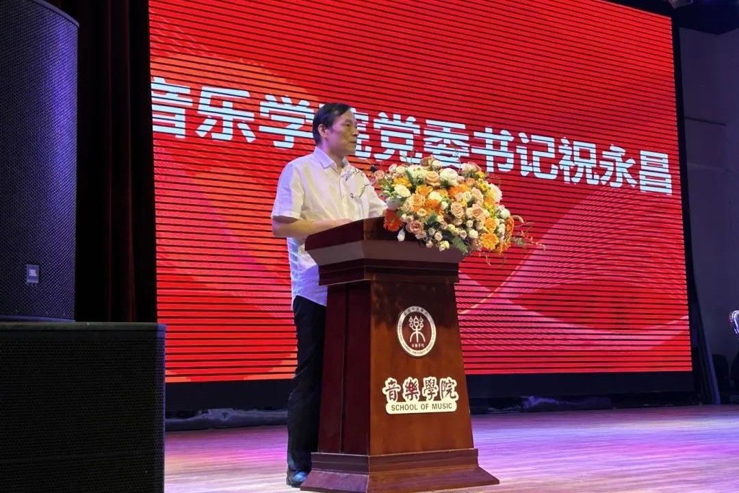 党委书记祝永昌以“成长”为话题发表了热情洋溢的讲话,在讲话中,他勉励新生们要珍惜四年大学时光,在未来的四年中,不仅要注重学习,注重积累;还要注重能力的培养,注重素质的提高;同时,作为新时代青年要有创新精神,要勇立潮头。最终要在音乐的殿堂中唱响属于自己的时代华章。