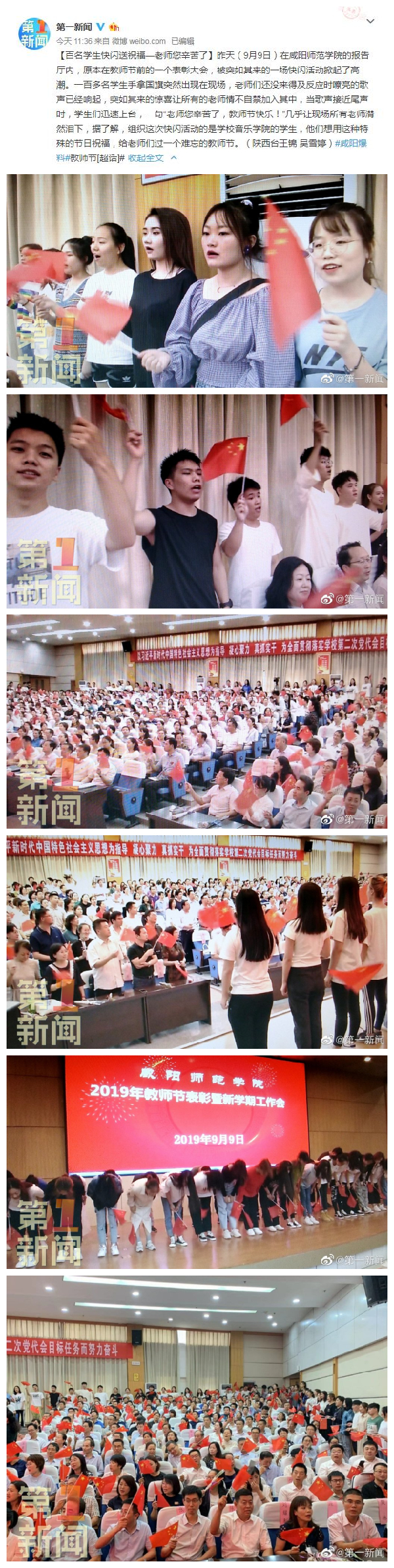 9月9日,公司召开教师节表彰会。会前,公司100余名员工的快闪,让会议气氛一下子活跃了起来,这种别开生面的祝福方式不仅让参会的500余名师生倍加感动,同时,也引起主流媒体的广泛关注。特转陕西电视台第一新闻报到的截图。