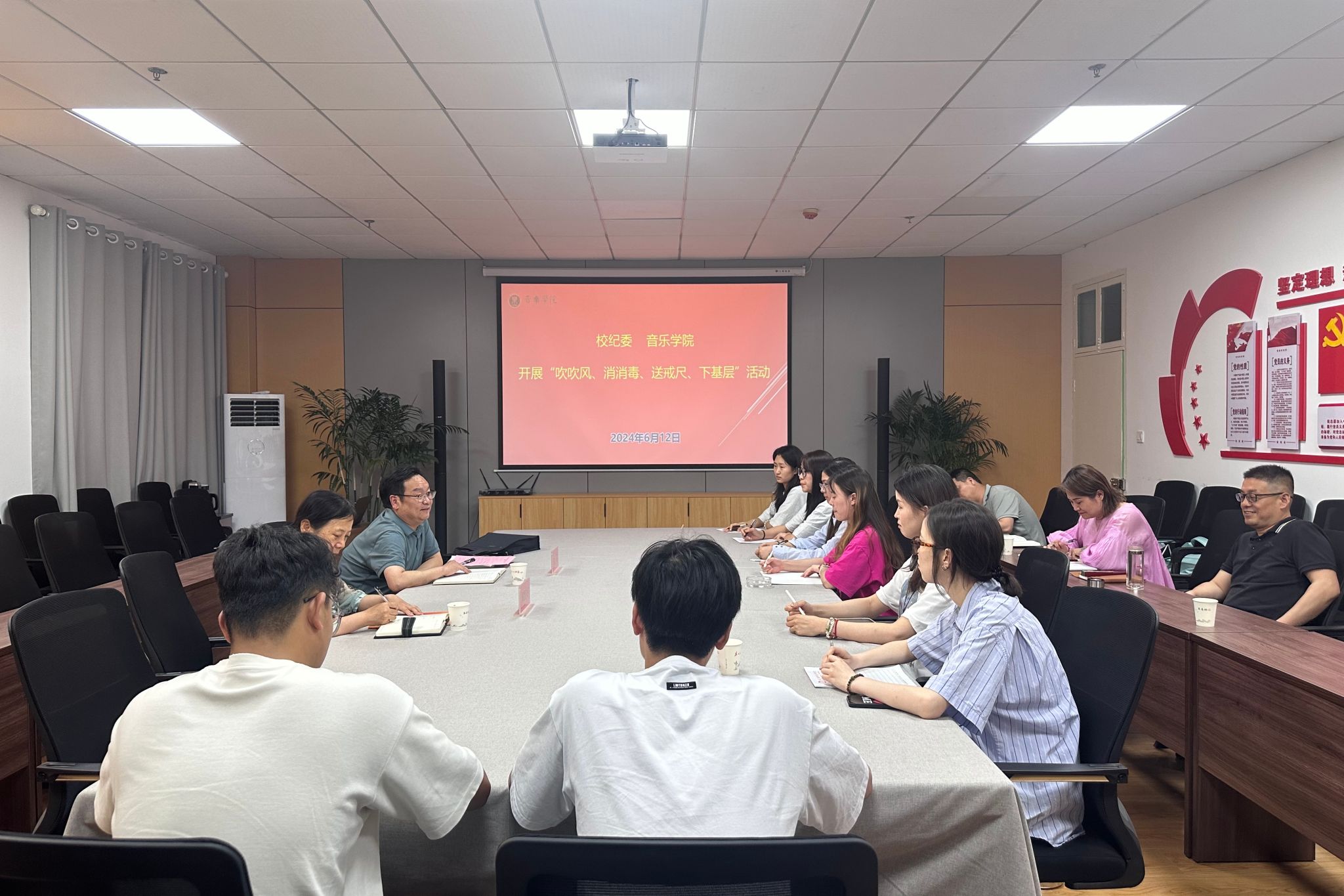6月12日,校纪委与音乐公司党委开展“吹吹风、消消毒、送戒尺、下基层”活动。校纪委副书记刘伟主持会议。