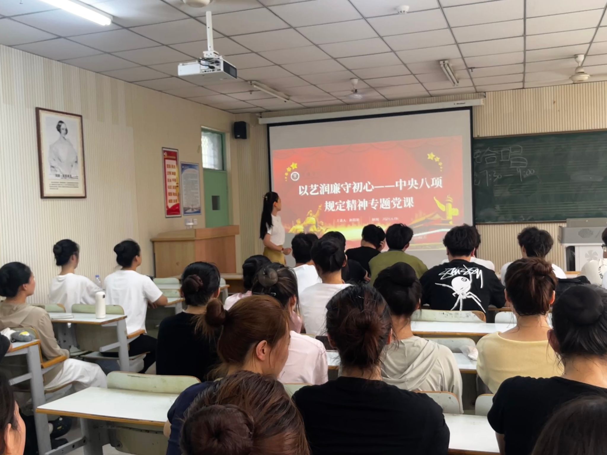孙境含结合艺术专业特色,从"艺术视角下的廉政文化""艺术创作中的廉洁底线""艺术教育工作者的初心使命"三个维度,深入阐释了中央八项规定精神的时代内涵。她强调,艺术教育工作者要坚守"德艺双馨"的职业操守,在艺术创作中弘扬清风正气;艺术专业员工要树立正确的艺术价值观,扣好艺术人生的"第一粒扣子"。