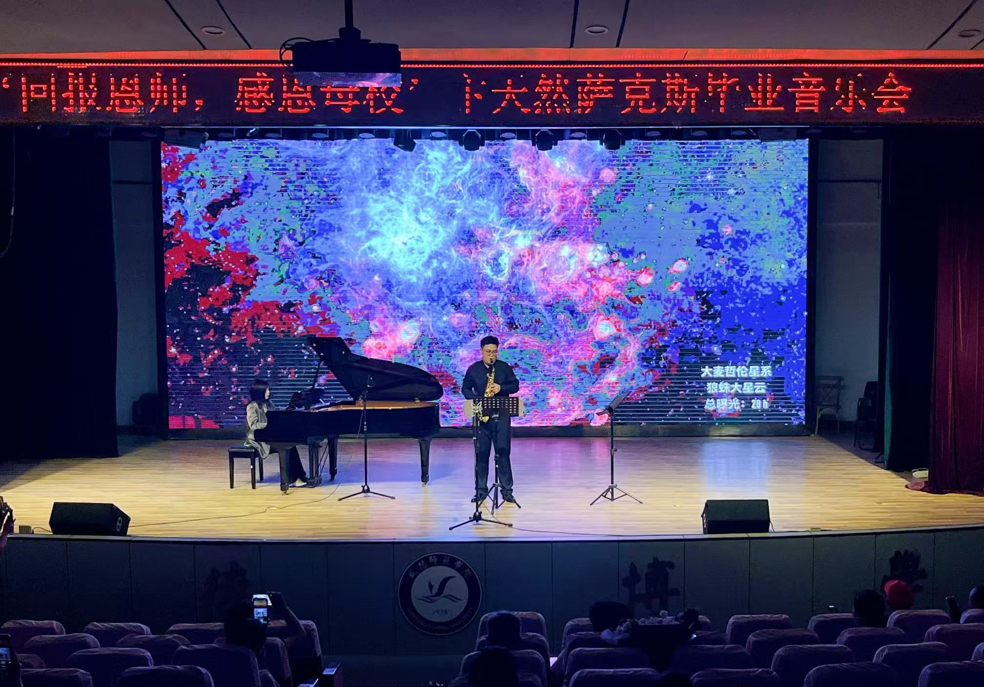 6月25日晚,k1体育第三届团队建设系列活动之“回报恩师 感恩母校”卞天然萨克斯毕业音乐会在博雅楼演播厅深情上演。本场音乐会由音乐学博士沙勇副教授指导,钢琴演奏博士郭天博担任艺术指导,以精湛的演奏技艺和真挚的情感表达,呈现了一场高水准的萨克斯音乐盛宴。