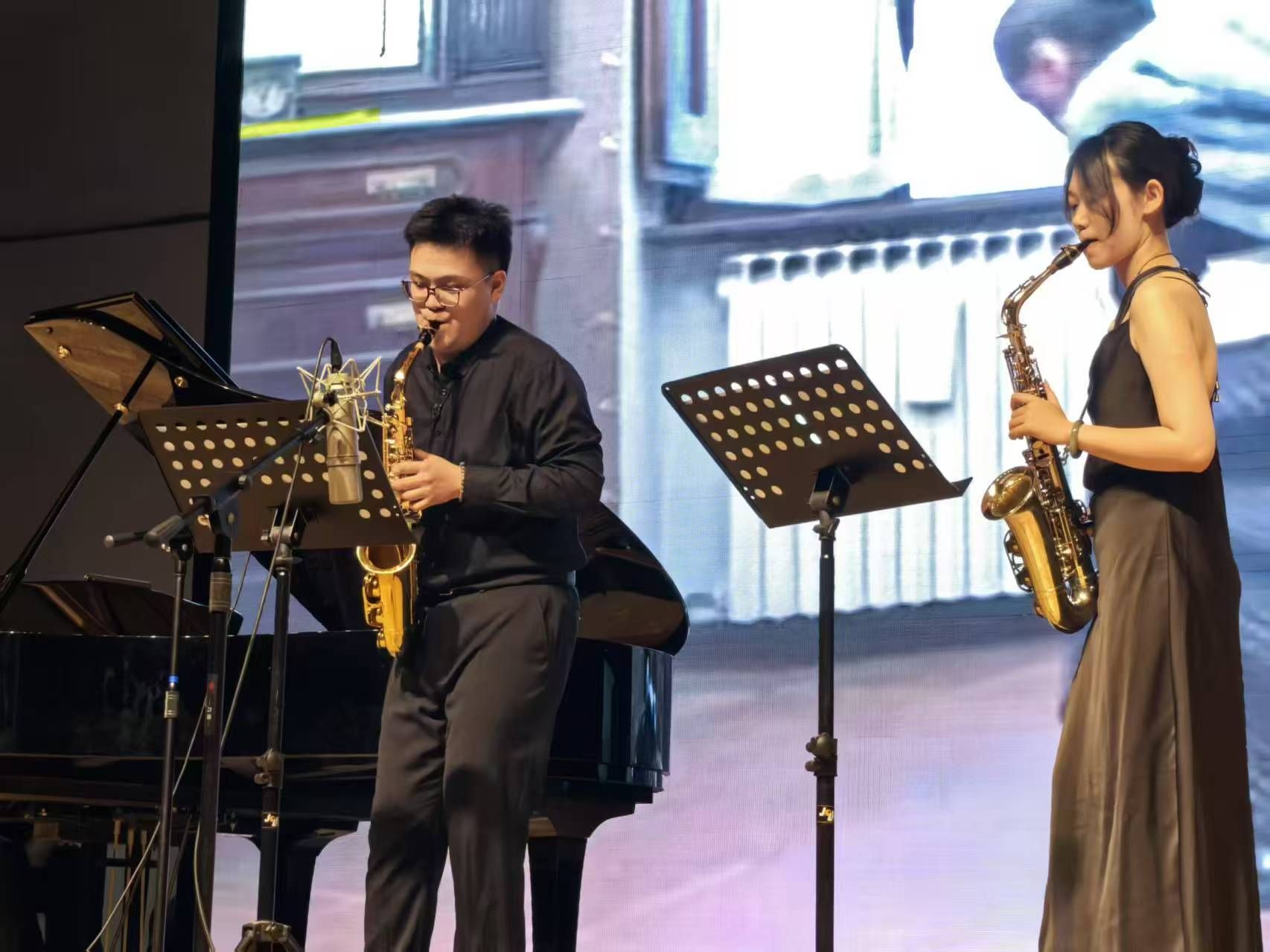 音乐会以中国经典作品《阳光照耀着塔什库尔干》拉开序幕,卞天然用萨克斯特有的金属质感音色,生动再现了塔吉克族音乐的绚丽色彩;《Adios Nonino》的探戈韵律则展现了演奏者对多元音乐风格的精准把控。《天堂电影院》的萨克斯二重奏以细腻的声部对话勾勒出电影音乐的叙事魅力,师生同台演绎的《一步之遥》更将现场气氛推向高潮,管弦间流淌着浓浓的师生情谊。特邀嘉宾带来的《龙猫》组曲,以轻快的旋律唤起观众的美好回忆,展现了萨克斯音乐的丰富表现力。