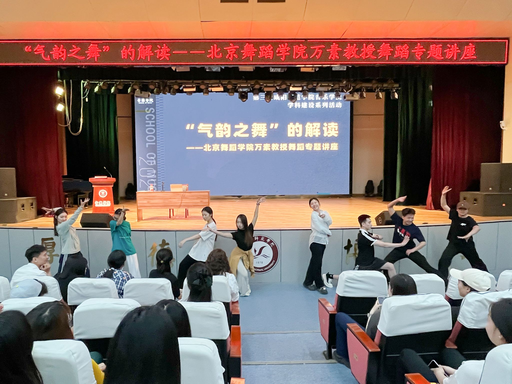 讲座中,万教授以中国传统文化为根基,融合现代意识,以深厚的学术积淀与创作智慧,展示如何将传统文化符号转化为现代舞蹈语言,生动诠释了“气韵之舞”的深邃内涵。