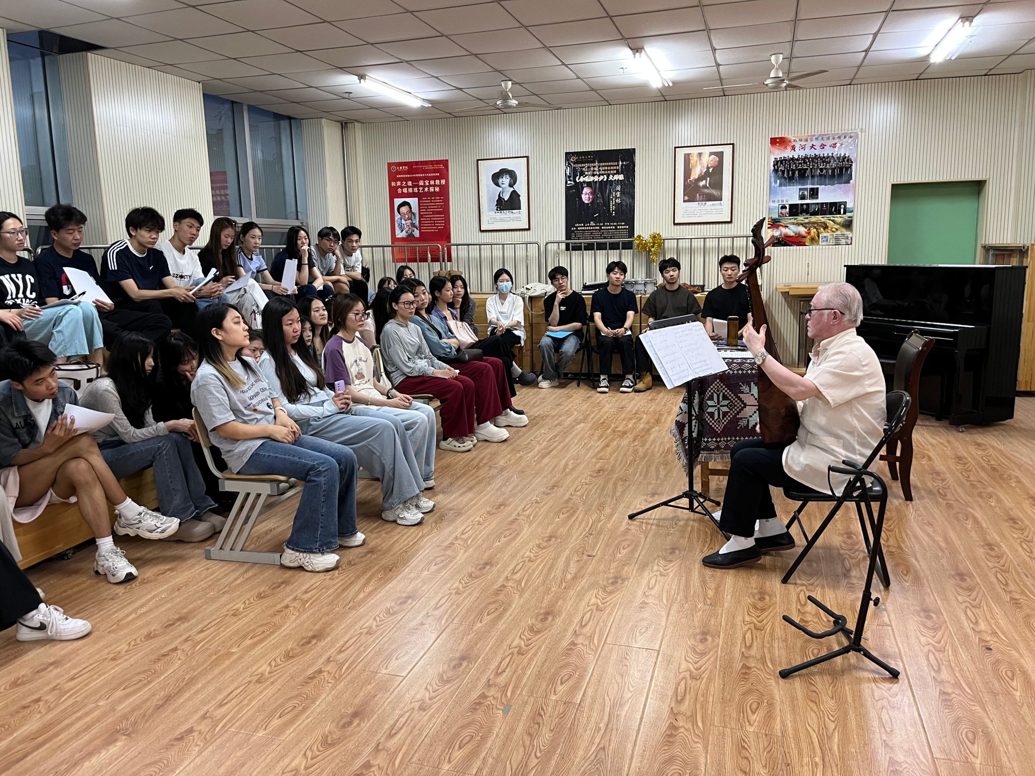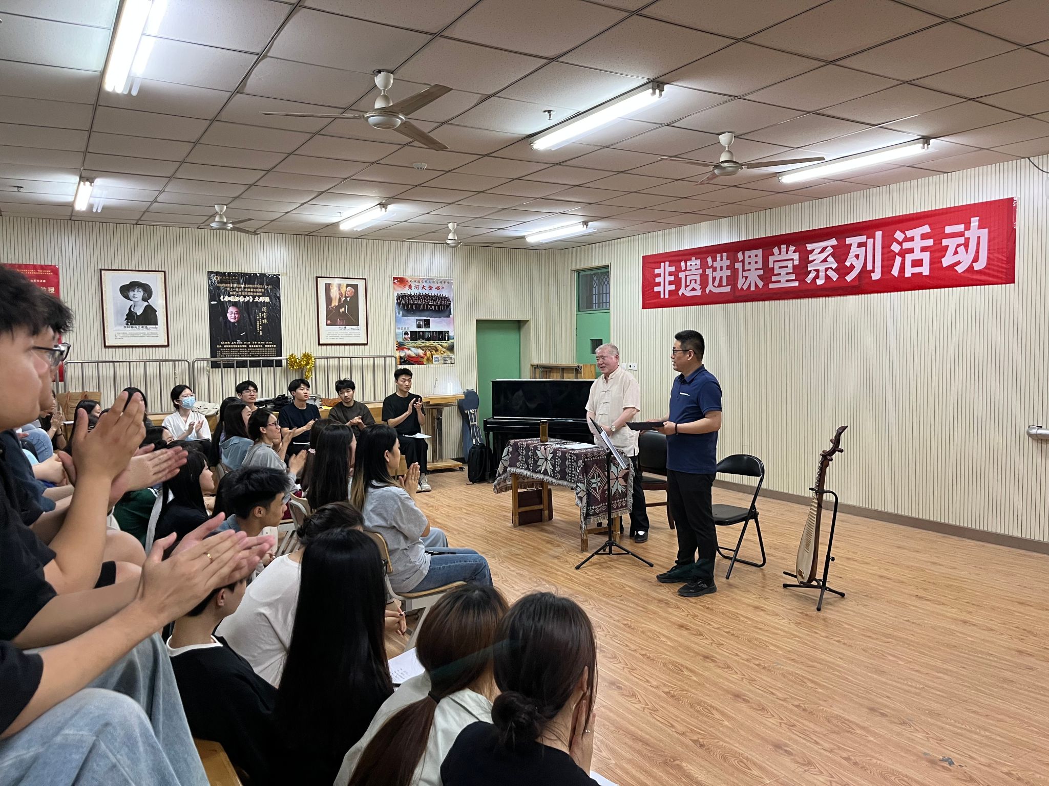 为进一步深化公司产品改革,推动非遗文化传承与专业教育深度融合。5月14日,公司创新开展的“非遗进课堂”系列活动在艺术楼325教室顺利进行。作为第三届团队建设系列活动的特色内容,“非遗进课堂”系列活动依托公司获批的省级一流课程《咸阳传统音乐》为平台,特邀国家级非遗项目“平湖派琵琶”代表性传承人郭少华先生,通过“讲、演、教”三位一体的教学模式,为k1体育师生呈现沉浸式非遗音乐文化体验。
